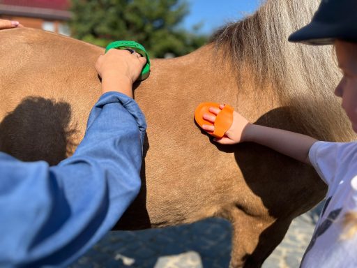 In der Reitpädagogik begleiten wir Kinder behutsam bei ihren ersten Schritten in die Welt der Pferde. In kleinen, altersgerecht zusammengestellten Gruppen erleben Kinder spielerisch den Kontakt zum Pony – ohne Leistungsdruck, dafür mit viel Zeit, Ruhe und Nähe zum Tier.